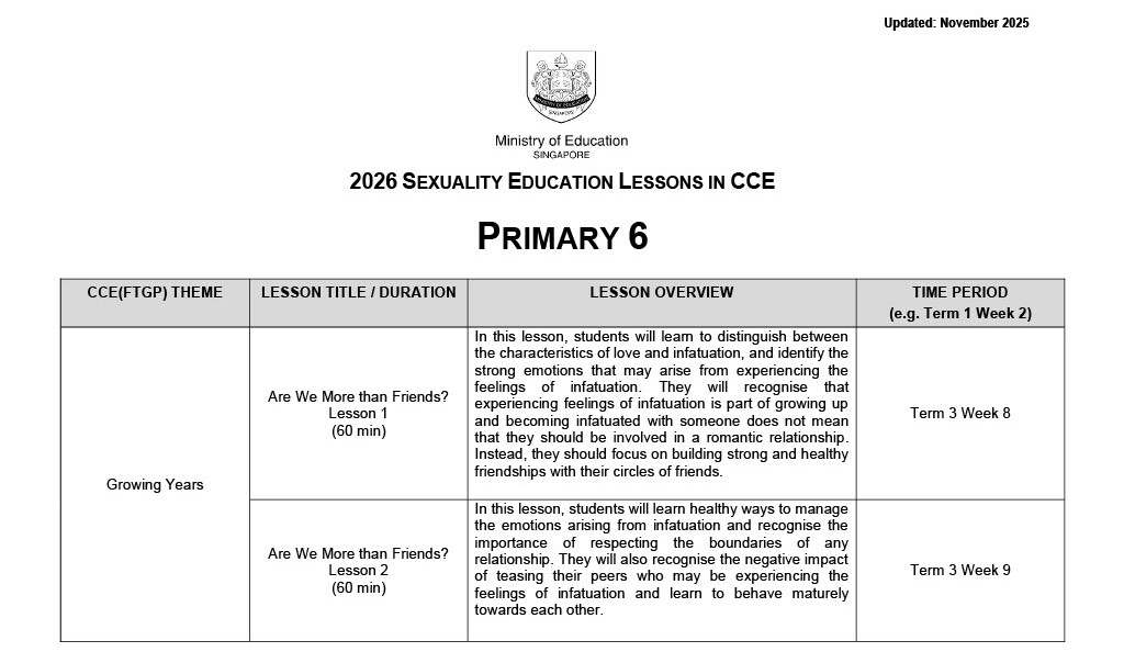 You may click here for more information on MOE Sexuality Education.